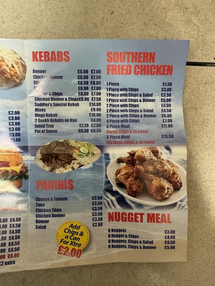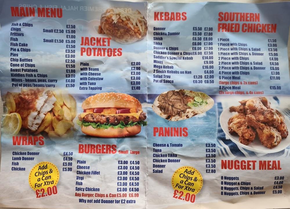 Saddlers Fish & Chips sits prominently on Normanton Rd, a busy thoroughfare in Derby known for its vibrant energy and diverse food scene. Its strategic location makes it easily accessible for locals and visitors alike, with several shops dotting the area, turning this spot into a popular lunch destination. The eatery is well-known for its commitment to quality and customer service, drawing a consistent crowd that enjoys quick yet satisfying meals. Seating options include limited bar seating and accommodating amenities like wheelchair-accessible seating, ensuring a comfortable experience for all guests. The restaurant's casual vibe pairs well with its popularity among university students, fostering a friendly, community-oriented atmosphere. Those rushing for a takeaway can call ahead or place an order for speedy delivery. In addition, Saddlers boasts an extensive menu that expands beyond just fish and chips, covering a range of fast food options that can satisfy any craving. It's a staple in the area, recognized as Derby's premier halal fish and chip shop, and has gained a loyal customer base over the years.